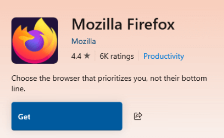 Use the search bar at the top to find the app you want. Again, we will use Firefox as example. (Side note: I’m not promoting Firefox. Just coincidently think of it as example)