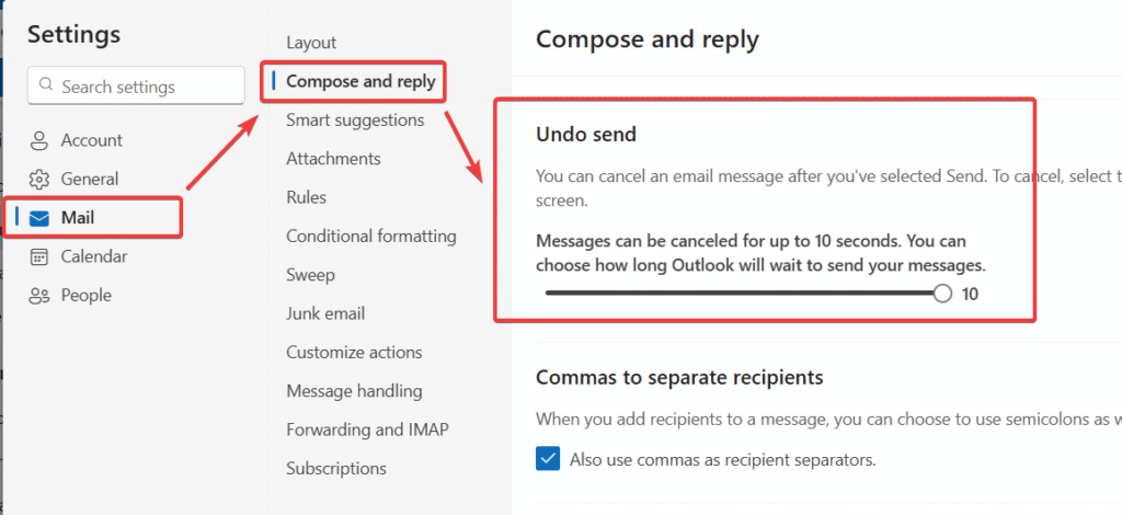 - Scroll down to the Undo send section. You can set a cancellation window of up to 10 seconds.