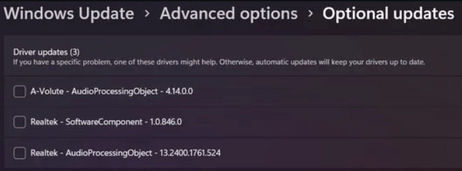 - Navigate to Windows Update > Advanced options > Optional updates.