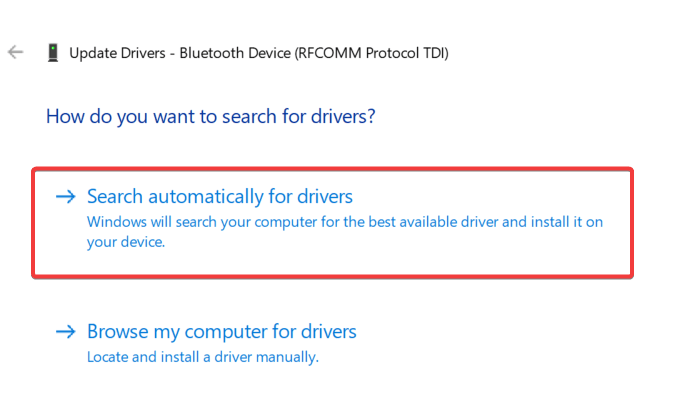 - Choose Search automatically for drivers. Windows will scan your computer for the latest available driver file.