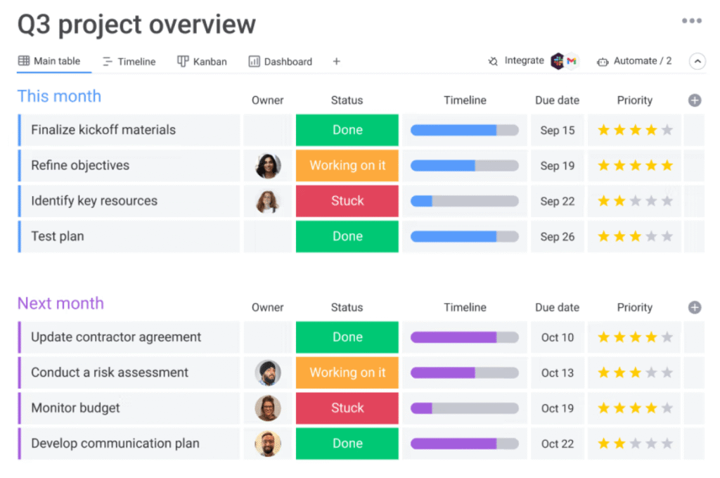 • Views: Switch instantly between Kanban, Gantt, Calendar, and Timeline views.
