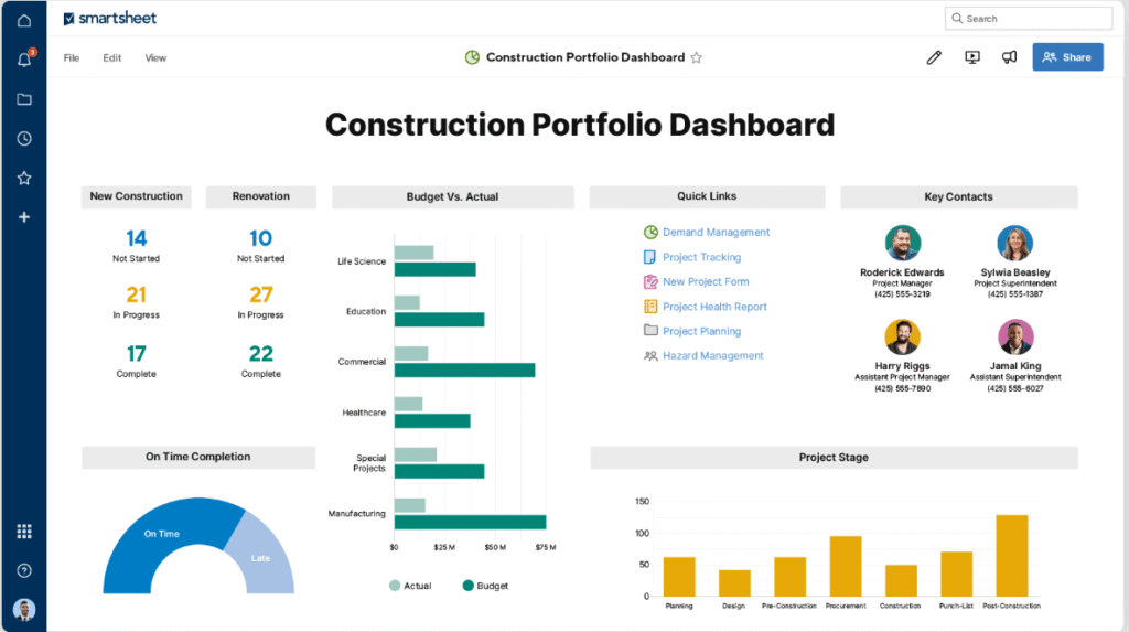 • Reporting: Does it offer a dashboard to show stakeholders project health?